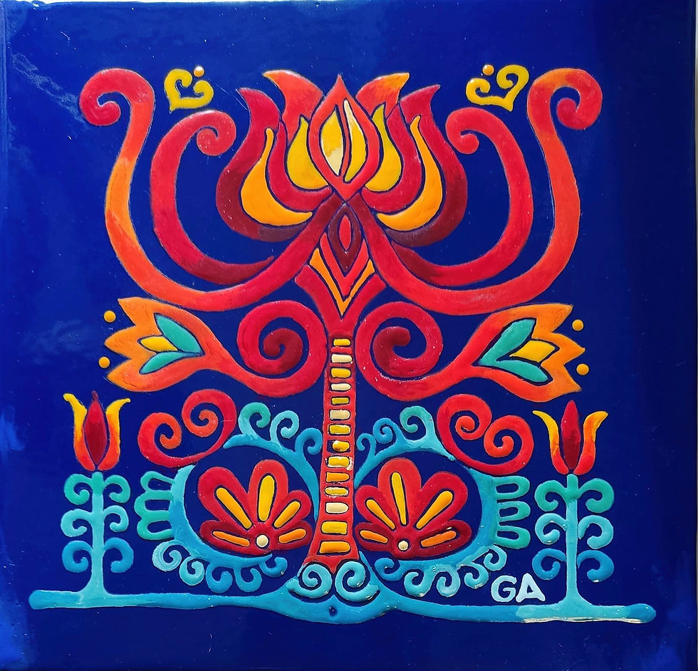 Frühlingstor erblüht. Fluss trägt die Farben. Drei teilen den Reis. Japan